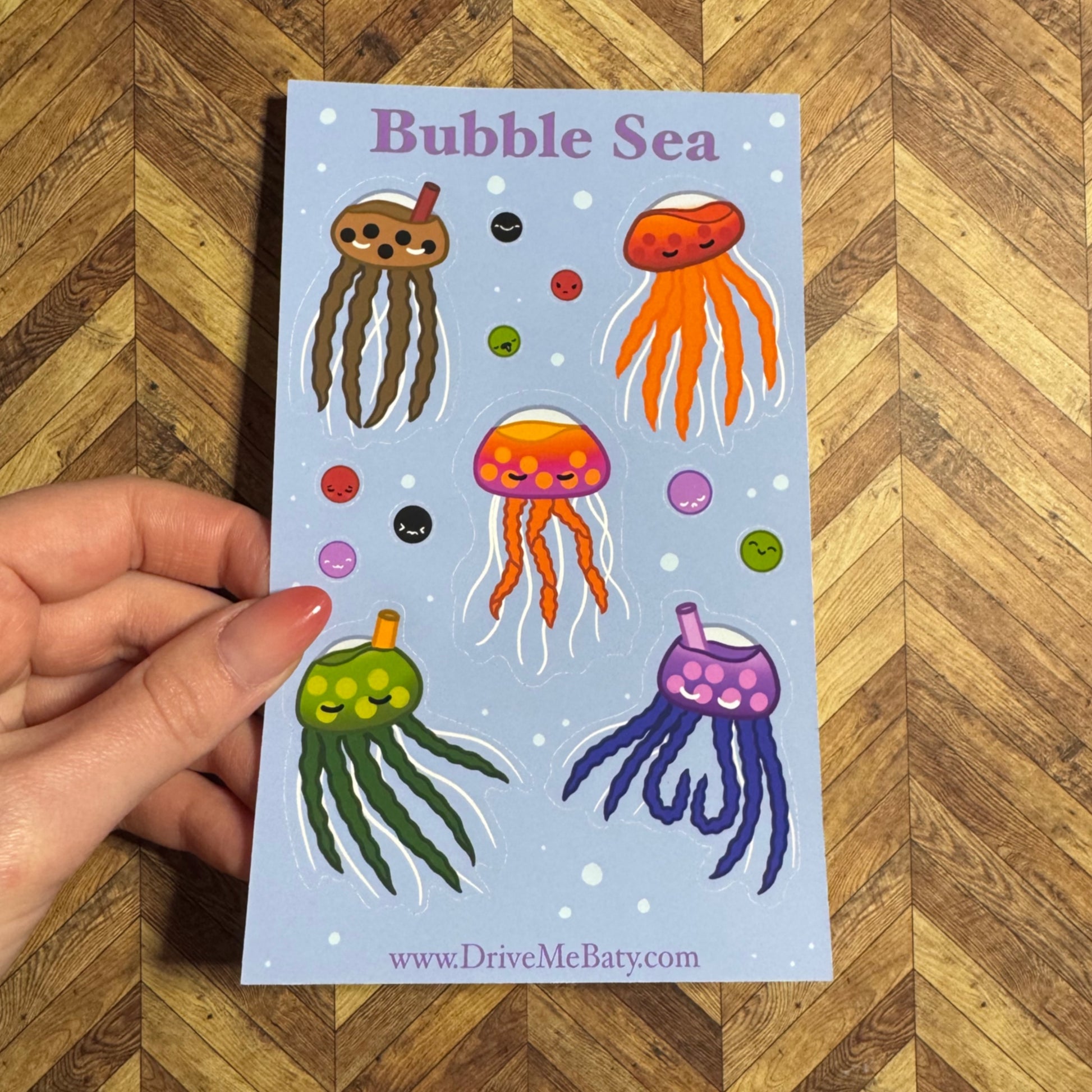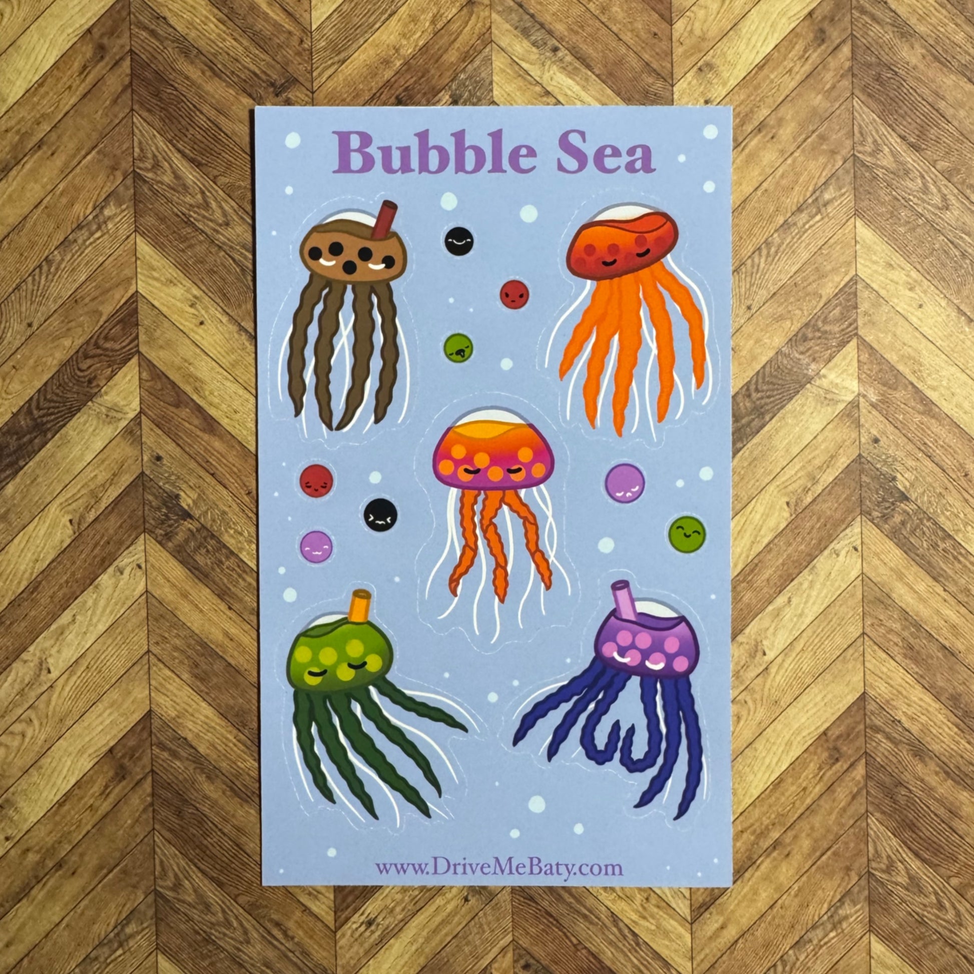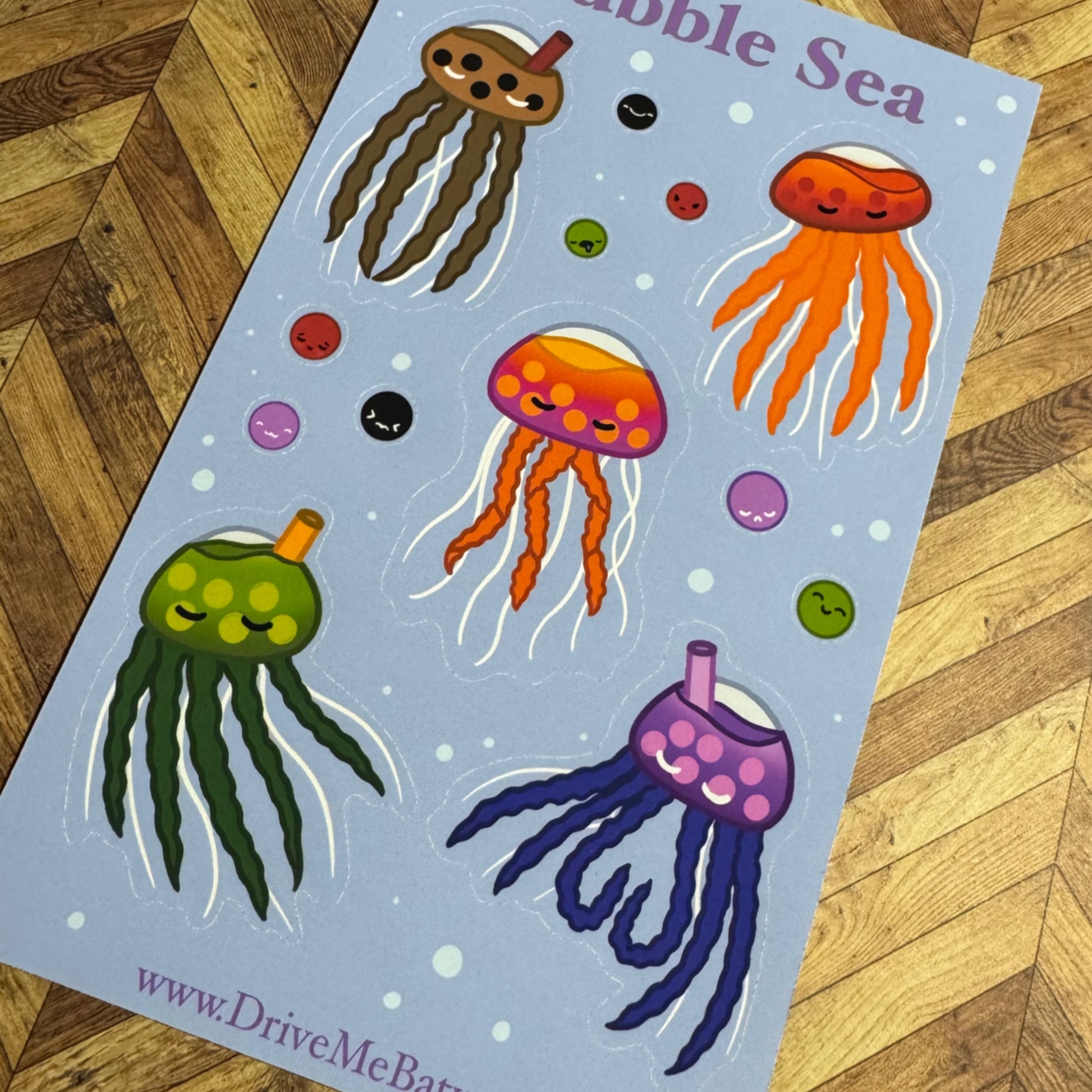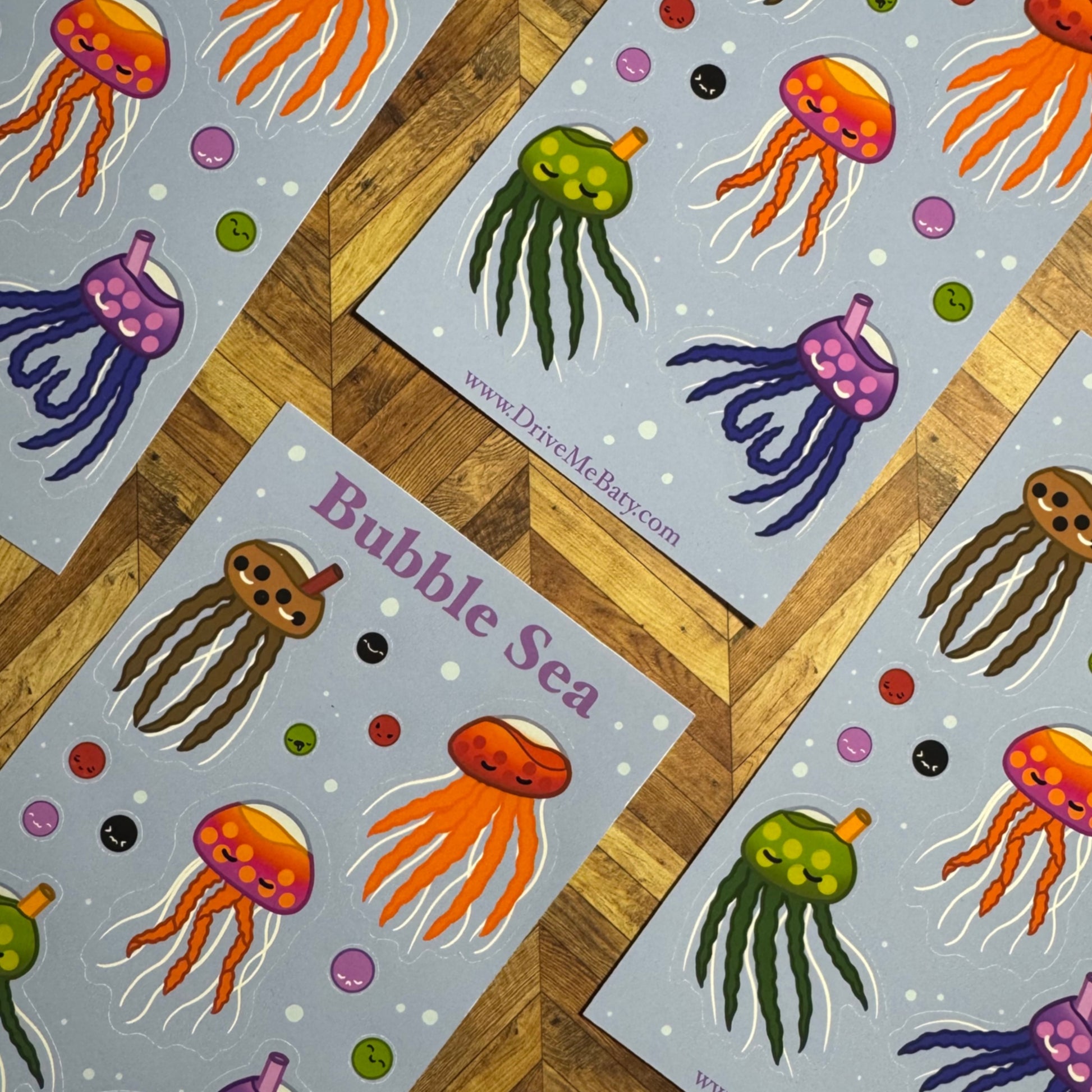 ‘Bubble Sea’ Bubble Tea Boba Jellyfish matt vinyl sticker sheet