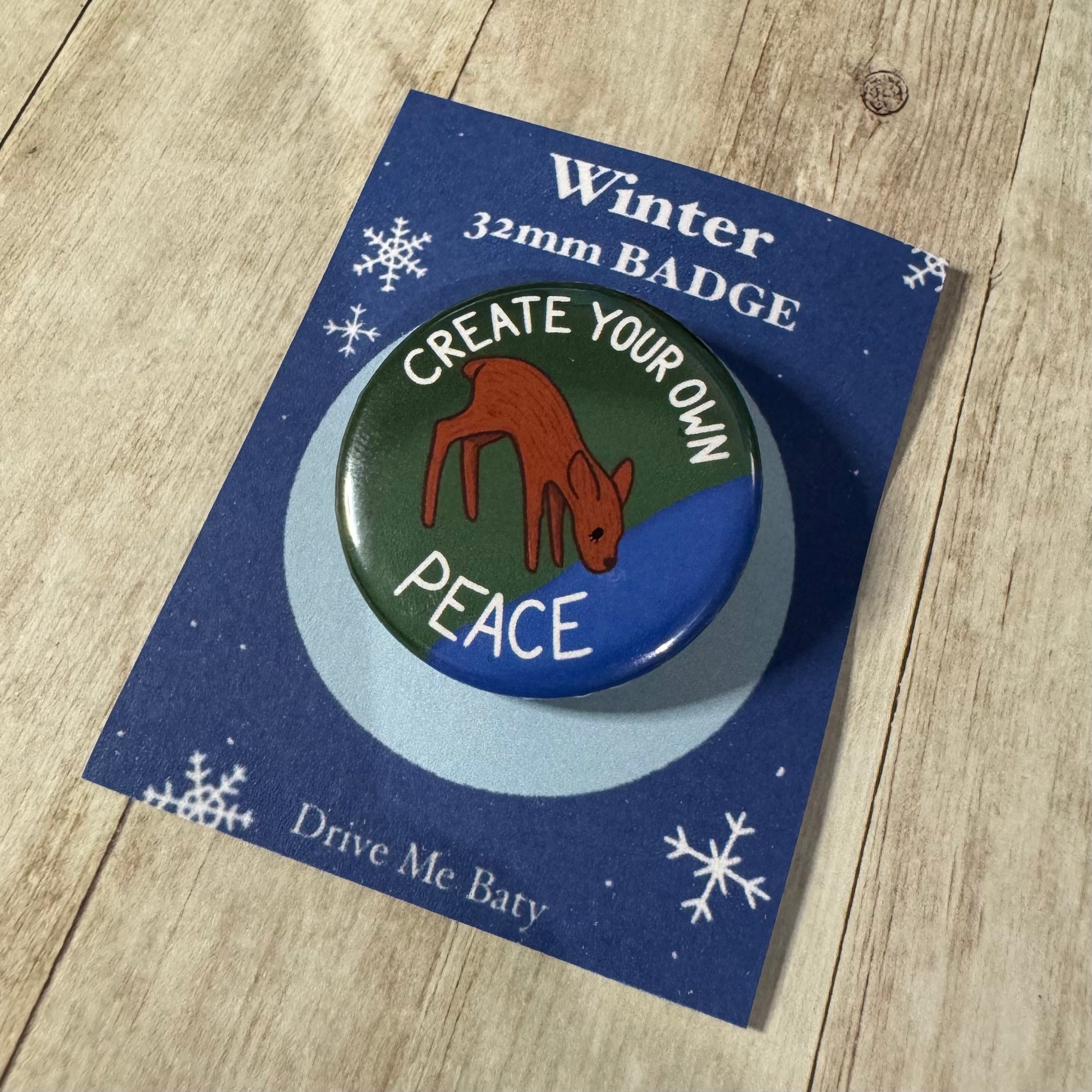Drive Me Baty badges are approximately 32mm. The matt photo paper material in the badges allows for high-quality print, with the laminate giving some protection and making it splash-proof.